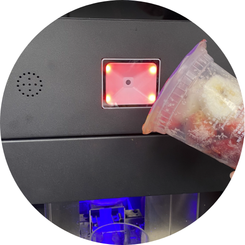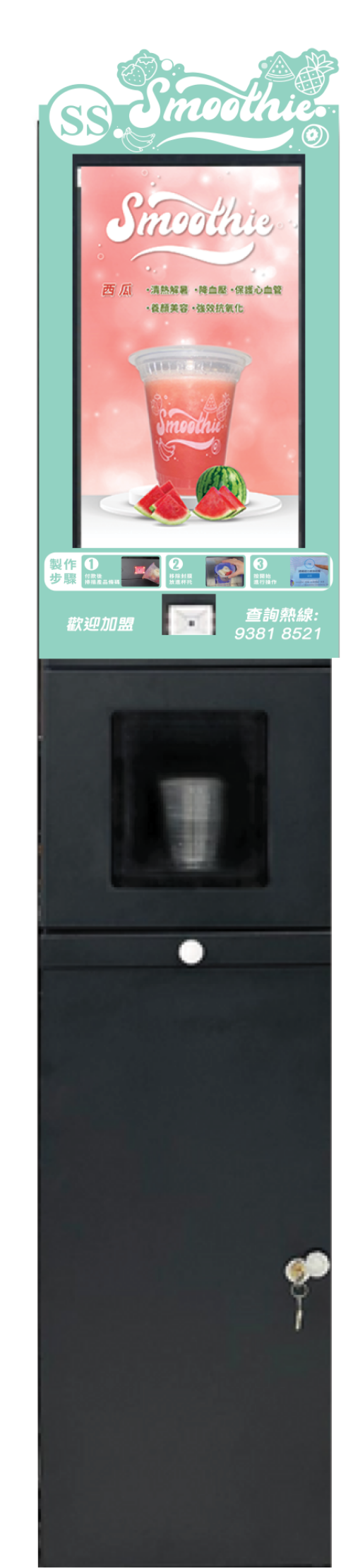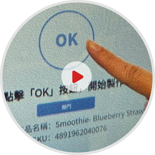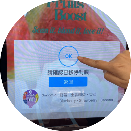顯示資訊:水果杯資料、操作流程提示、 機器狀態通知