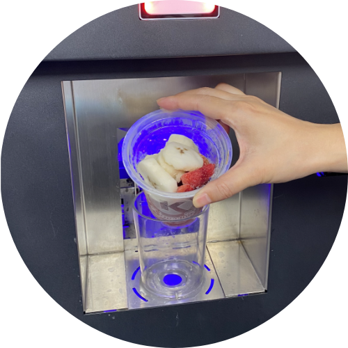 顯示資訊:水果杯資料、操作流程提示、 機器狀態通知